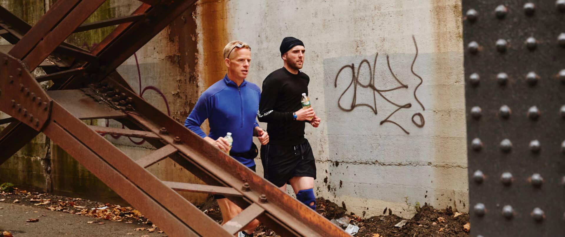 Geld voor hardloopschoenen heeft hij niet, maar na een brief aan schoenenmerk Brooks krijgt hij zowaar een gratis paar thuisgestuurd. Hij probeert ze uit op een afgedankt voetbalveldje achter zijn huis. Rennend van doelpaal naar doelpaal trekken zijn voeten olifantenpaadjes in het woekerende gras. “Heel even bracht het me opwinding. Maar uiteindelijk blijft dat eindeloos heen en weer rennen op zo’n postzegeltje gras gewoon dodelijk saai. Ik botste bovendien steeds op mensen die er hun hond uitlieten. Zij zagen niet dat ik blind was, ik zag niet dat zij niet opzij gingen. Dat was de reden dat ik vertrok.”