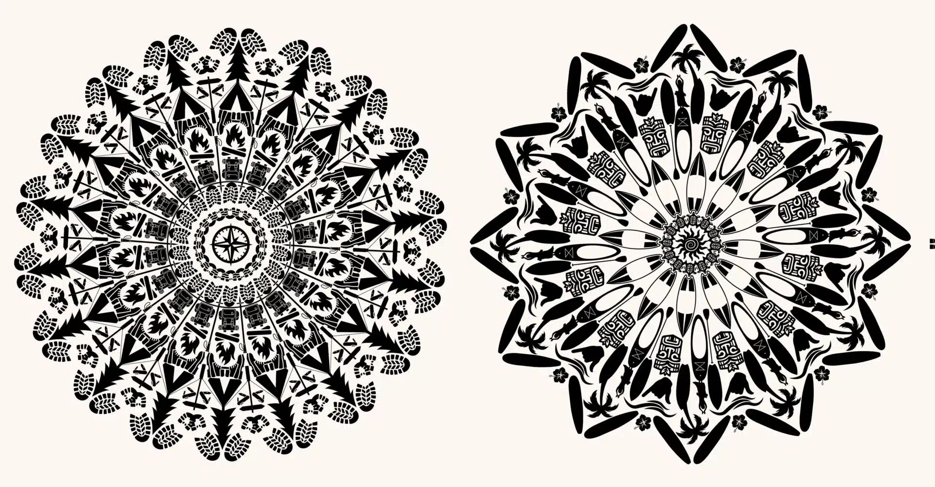 Salt vertaalde het Mandala patroon – vaak bloemen, cirkels, sterren, spiralen etc. – naar de beleveniswereld van outdoor fans. Niet alleen als een spiritueel symbool maar ook als een kunstvorm voor aan de wand.