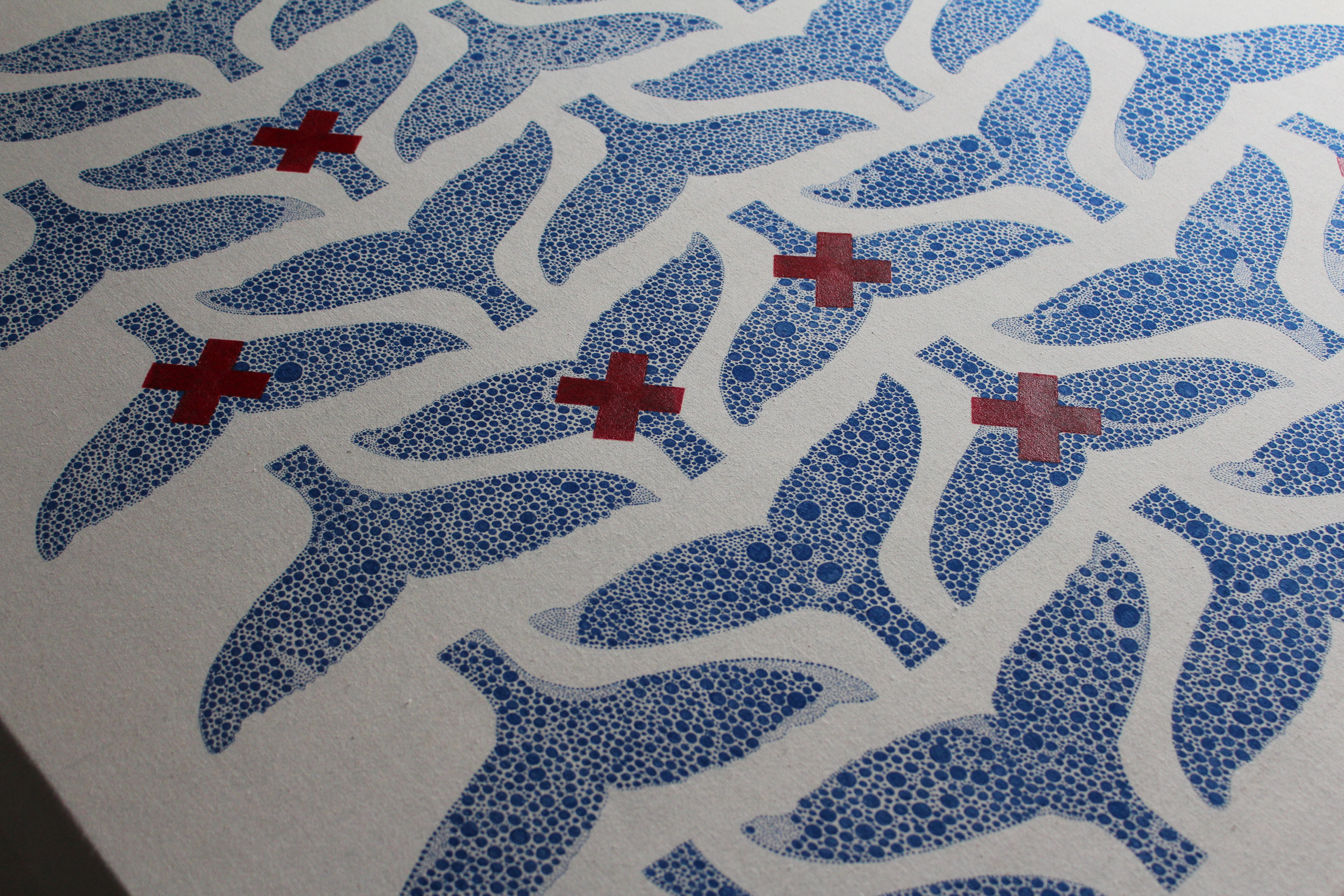 Op die ongelooflijke plek, in het hart van de Eeuwige Stad, ontstond mijn interesse in druktechnieken uit het verleden, zoals linodruk, xylografie (houtdrukkunst) en cyanotypie het maken van blauwdrukken met behulp van een fotografisch proces. Ik hou van enkele, langzame handelingen, en van de precisie van details die deze technieken met zich meebrengen. Of het nu om het wegsnijden van een hout- of linosnipper gaat, of om het repeterende van het tekenen van cirkels.”