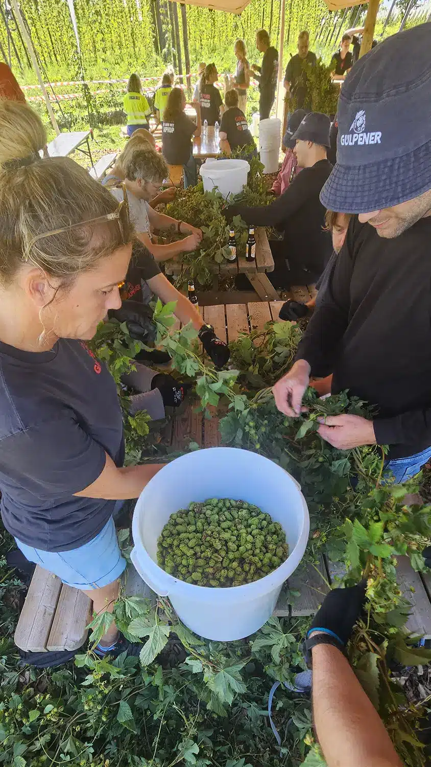 Een samenwerking tussen Salt en de Gulpener Bierbrouwerij die hun ver-rúkke-lijke bieren brouwen in het meest duurzame brouwhuis van Europa. Met gerst en granen van boeren op fietsafstand, water uit eigen bron en hop uit het dorp verderop. September is de maand dat deze hop geplukt moet worden, en dat deed het familiebedrijf, dat volgend jaar 200 jaar bestaat, samen met hun ‘Vrunden’ én dit jaar ook met 15 Salt-leden.