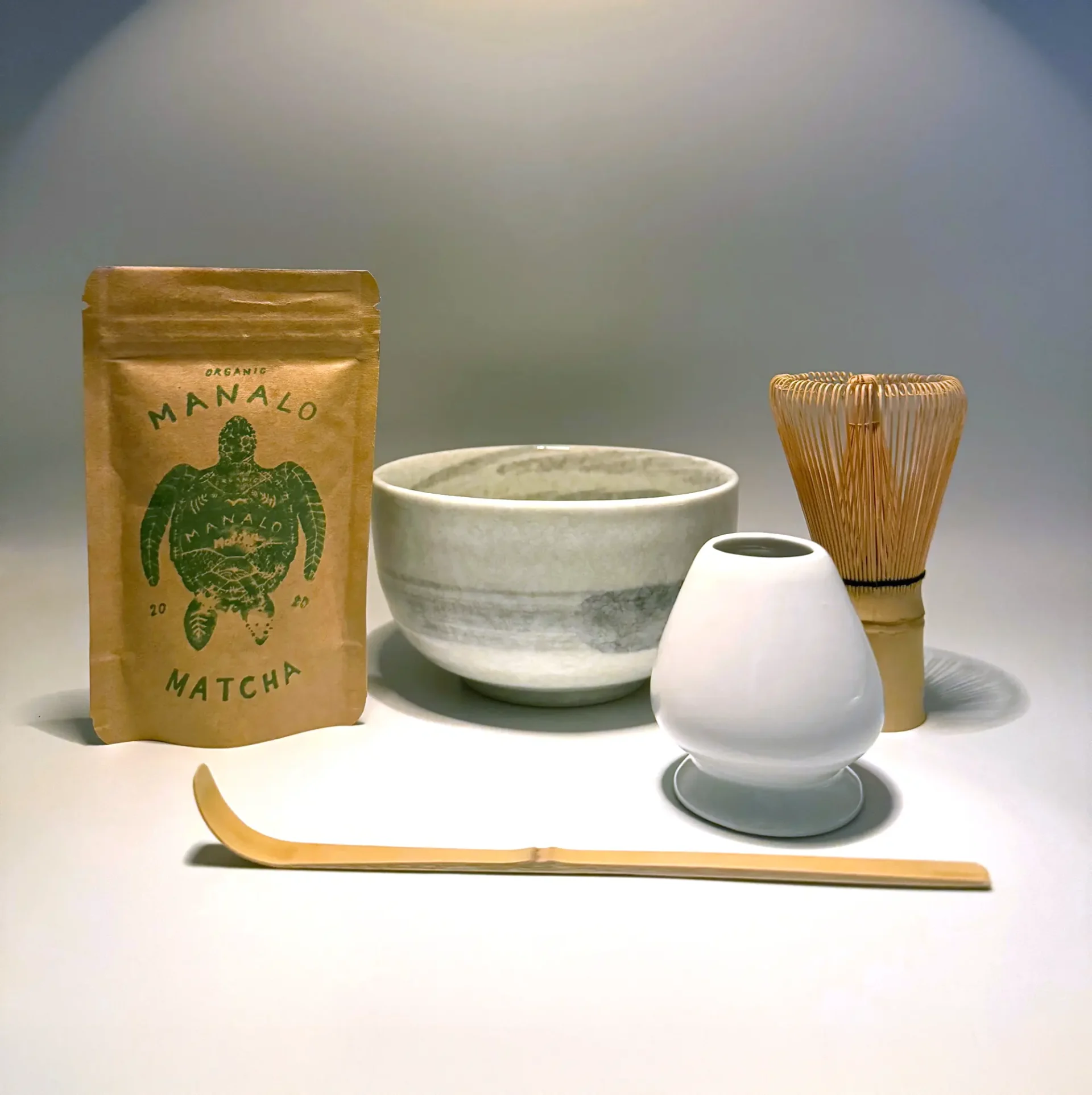 - En een zakje (30 gr) premium Manalo matcha thee van biologische topkwaliteit.
