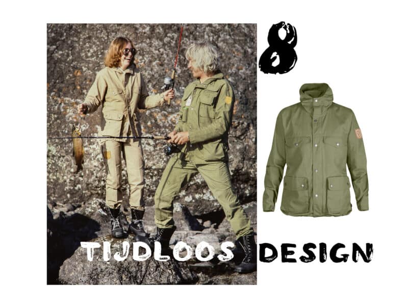 Het Zweedse Fjällräven laat al jaren zien dat je heel goed tijdloos kunt produceren. Al sinds begin jaren 60 worden producten volgens ‘grootmoeders recept’ vervaardigd. Zo is het Greenland Jacket uit de 2020 collectie nog vrijwel hetzelfde als de allereerste versie uit 1968. Een lange levensduur verkrijg je dus niet alleen door het gebruik van onverwoestbare materialen, maar ook het ontwerp kan bepalend zijn of een kledingstuk al dan niet een levenslange favoriet wordt en je er dus jaren of een leven, en soms zelfs generaties, mee vooruit kunt.