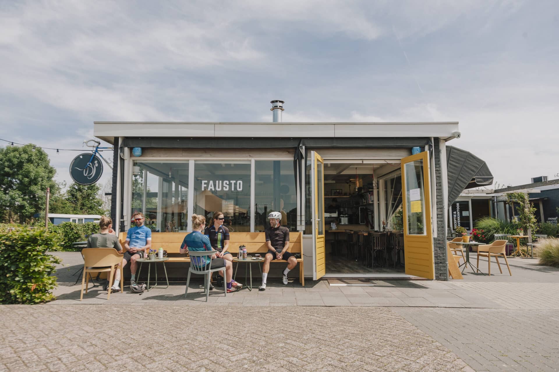 Wielerfan, wandelaar of toevallige passant; iedereen kan binnenlopen bij Wielercafé Fausto in de jachthaven van Schoonhoven. Of het nu voor een ‘single origin’ koffie is, gebrand in de eigen branderij van ‘de Koffiemannen’ of voor een ontbijtje, lunch of een burger (ook vega) met verse dikke frieten van het Friethoes. Fausto ligt op een centrale plek voor langeafstandsfietsers die routes vanuit Rotterdam, Utrecht, Gouda of Breda volgen. Een ideale pitstop dus.
