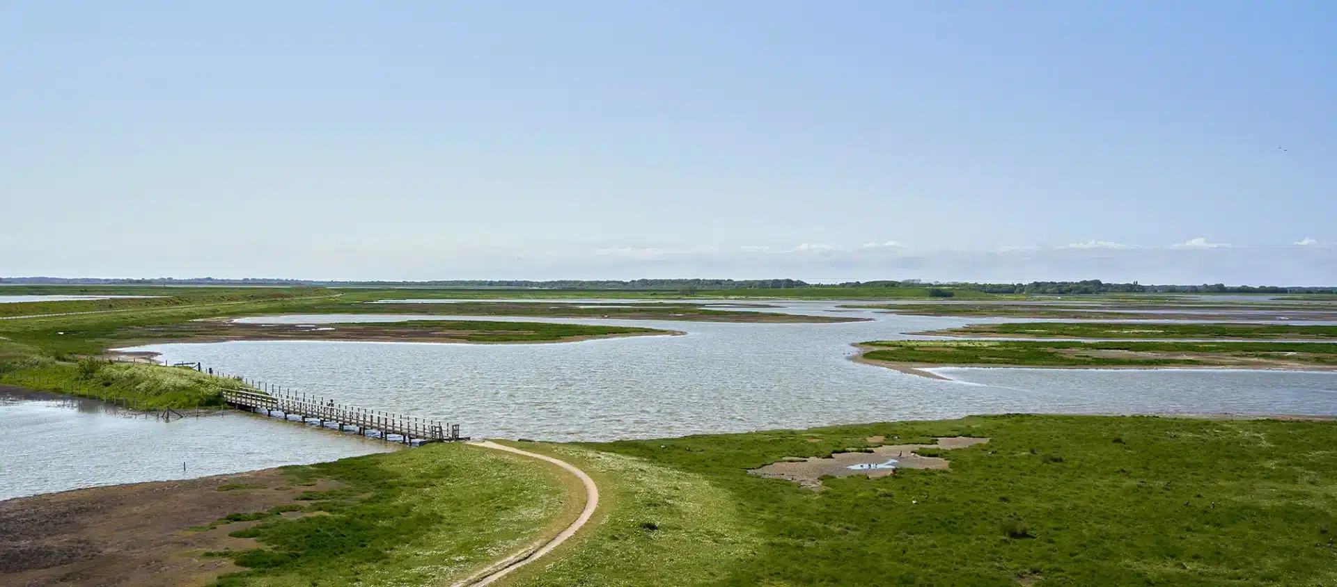 1. Op de Marker Wadden liggen drie bijzondere vogelkijkhutten: de Duikeend, de Lepelaar en de Aalscholver. Tussen de hutten lopen meanderende vlonderpaden.