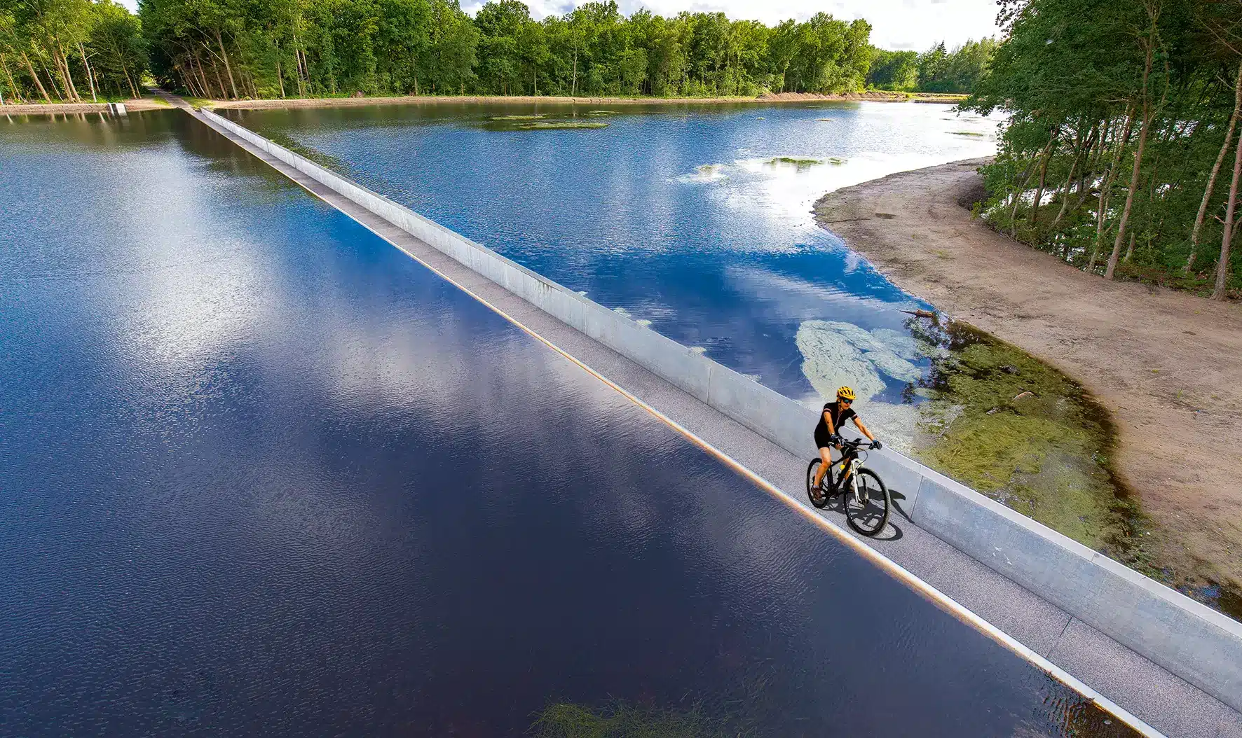 Dit 212 meter lange pad voert door een sleuf die in het water verzonken is. De waterspiegel bevindt zich aan weerszijden dus op ooghoogte, waardoor je vanaf het zadel bijna het idee krijgt dat je als Mozes de Rode Zee in tweeën trapt. Het ontwerp nabij fietsknooppunt 91 maakt onderdeel uit van een drietal ‘fietskunstwerken’.