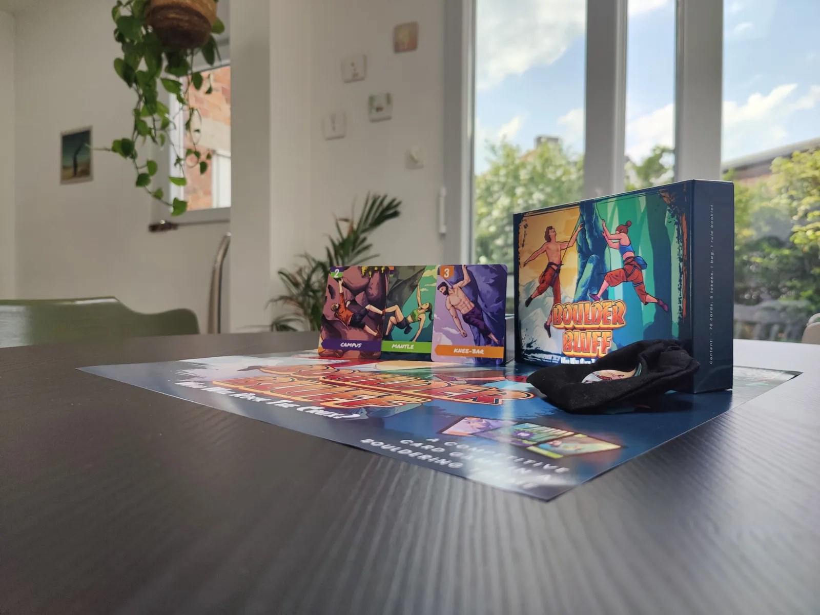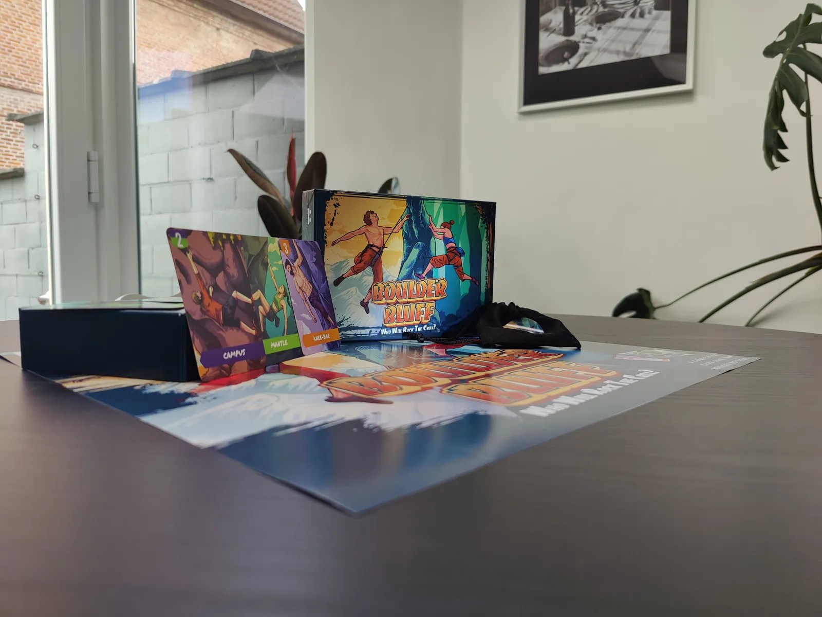 Speel kaarten, trek chalk-tokens, overwin routes en probeer zó overtuigend te klimmen dat niemand het aandurft om met je mee te gaan. Want dan win je de boulder automatisch. Dat is echte Boulder Bluff.
