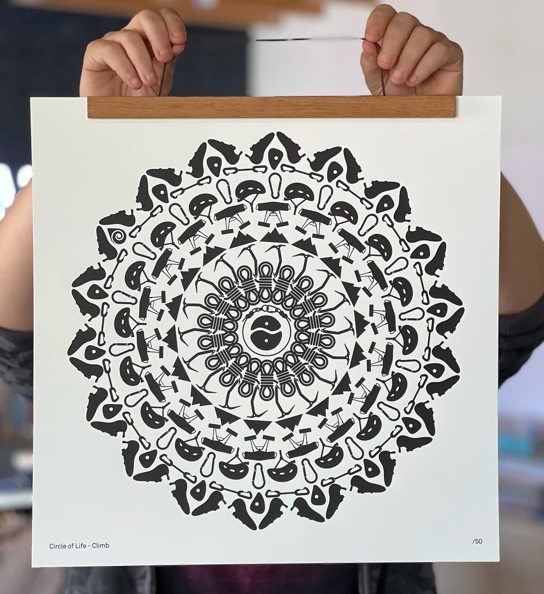 Geïnspireerd door de eeuwenoude Mandala – een symbool zonder begin of einde, dat harmonie en verbondenheid uitstraalt – ontwierp Salt vier unieke Circles of Life. Elke poster vertaalt dit oeroude patroon naar de wereld van outdoor avonturiers. Van spiralen en sterren tot lijnen die kracht en beweging vangen: een kunstwerk dat niet alleen mooi aan je muur hangt, maar je ook herinnert aan de kracht van je passie.