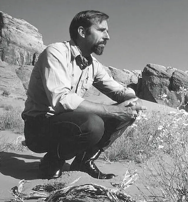 Edward Abbey (1927–1989) was een Amerikaans schrijver, essayist en natuurbeschermer. Hij groeide op in Pennsylvania, maar vond zijn geestelijke thuis in de ruige landschappen van het zuidwesten van de VS. Abbey werd bekend om zijn scherpe pen, waarin poëzie, humor en rebellie samenkomen. Hij was zowel bewonderd als berucht om zijn uitgesproken kritiek op massatoerisme en milieuvernietiging. Zijn boeken, waaronder Desert Solitaire en The Monkey Wrench Gang, inspireerden generaties natuurliefhebbers en activisten om wildernis te koesteren en te beschermen.