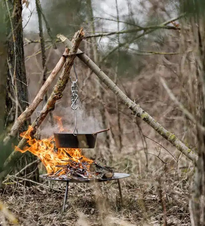 - Toepassing: Driepoot bouwen voor buitenkoken, schuilplaatsen
