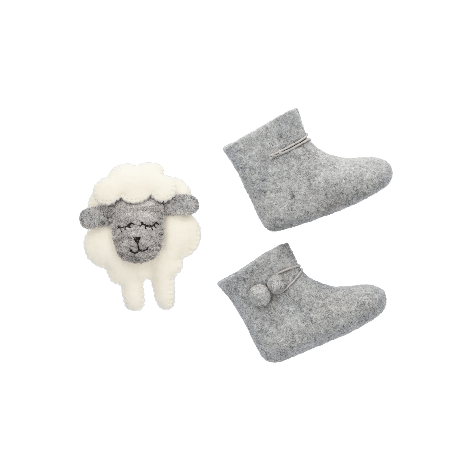 De Tofvel babyslofjes grijs worden geleverd met schaapje Lala in dezelfde kleur als de slofjes. Dit maakt ze ook super leuk om te geven als cadeau.