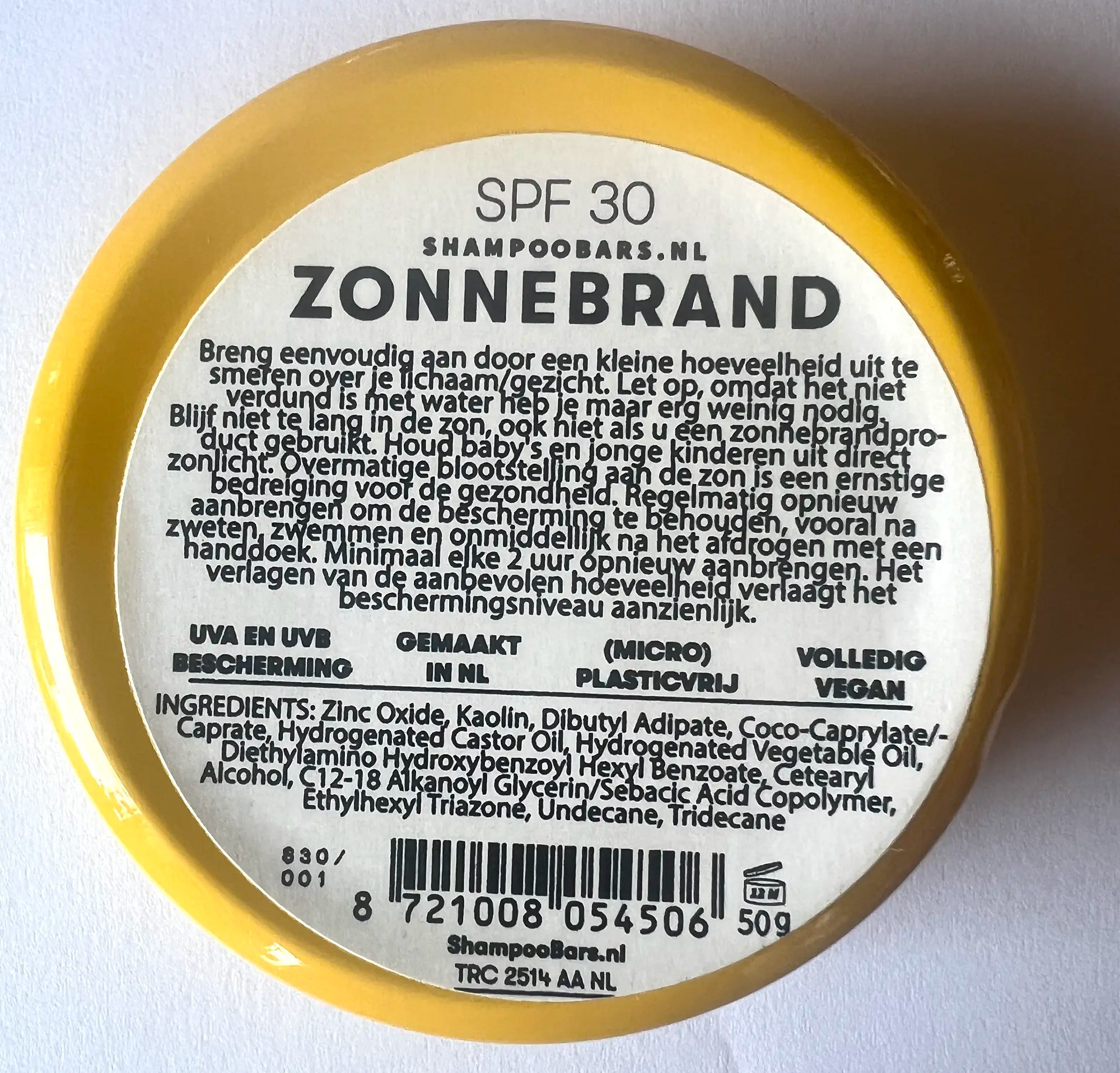 Deze Zonnebrandbar SPF 30 bevat een mineraal zonnefilter op basis van zinkoxide, dit legt een laagje op de huid die zonnestralen weerkaatst waardoor je direct beschermd bent. Daarnaast bevat het nog twee extra zonnefilters die in de huid trekken waardoor je volledig beschermd bent tegen UVA en UVB-straling. De toegevoegde natuurlijke oliën en klei zorgen ervoor dat de zonnebrand makkelijk smeerbaar is zonder een witte waas achter te laten. Daarnaast voedt en hydrateert het de huid als een moisturizer